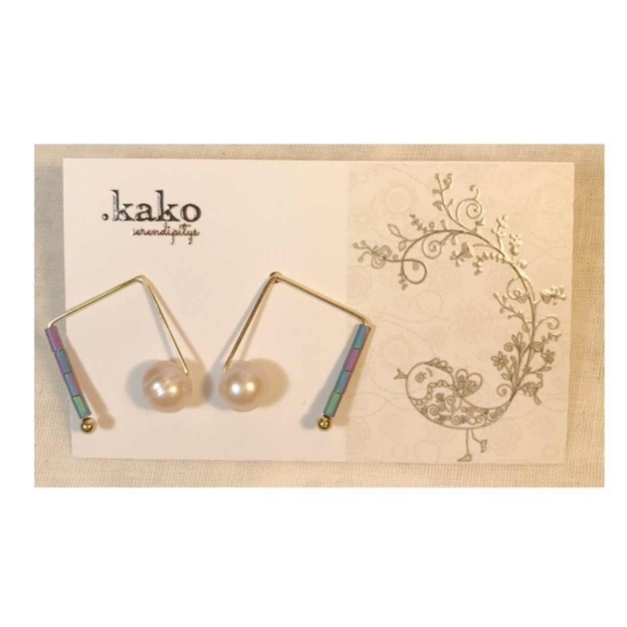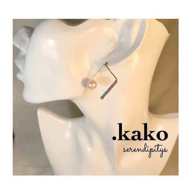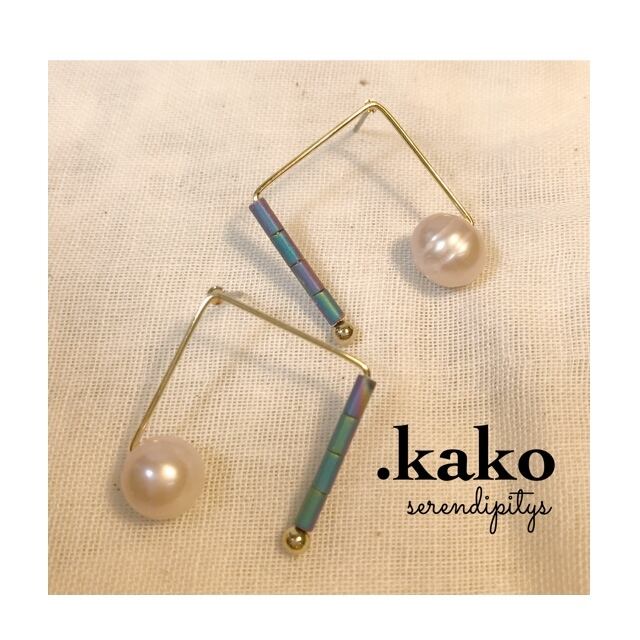 スクエアの中に天然パールとシックなカラーのビーズが入ってるピアスです☆