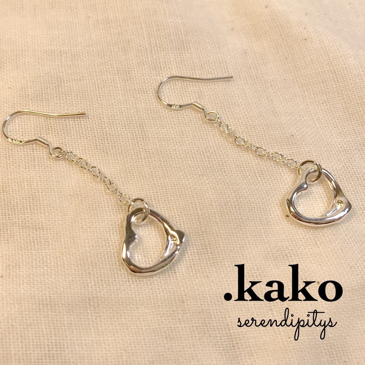 耳元で揺れるぶら下がりタイプのオープンハートのシルバーピアス♪
