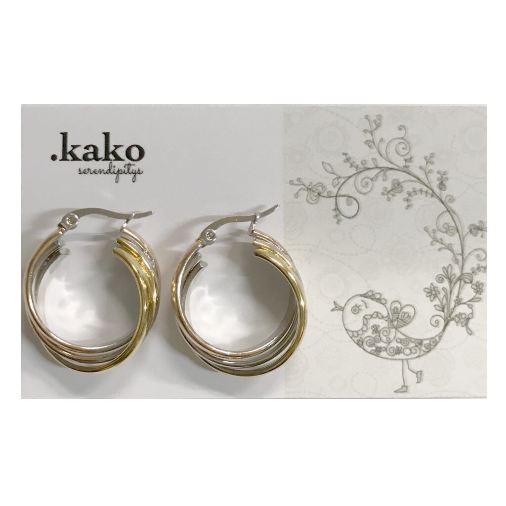 大きさも約2.5㎝ほどあり、3色のリングが組み合わさっているのでボリュームのあるフープピアスになっています☆