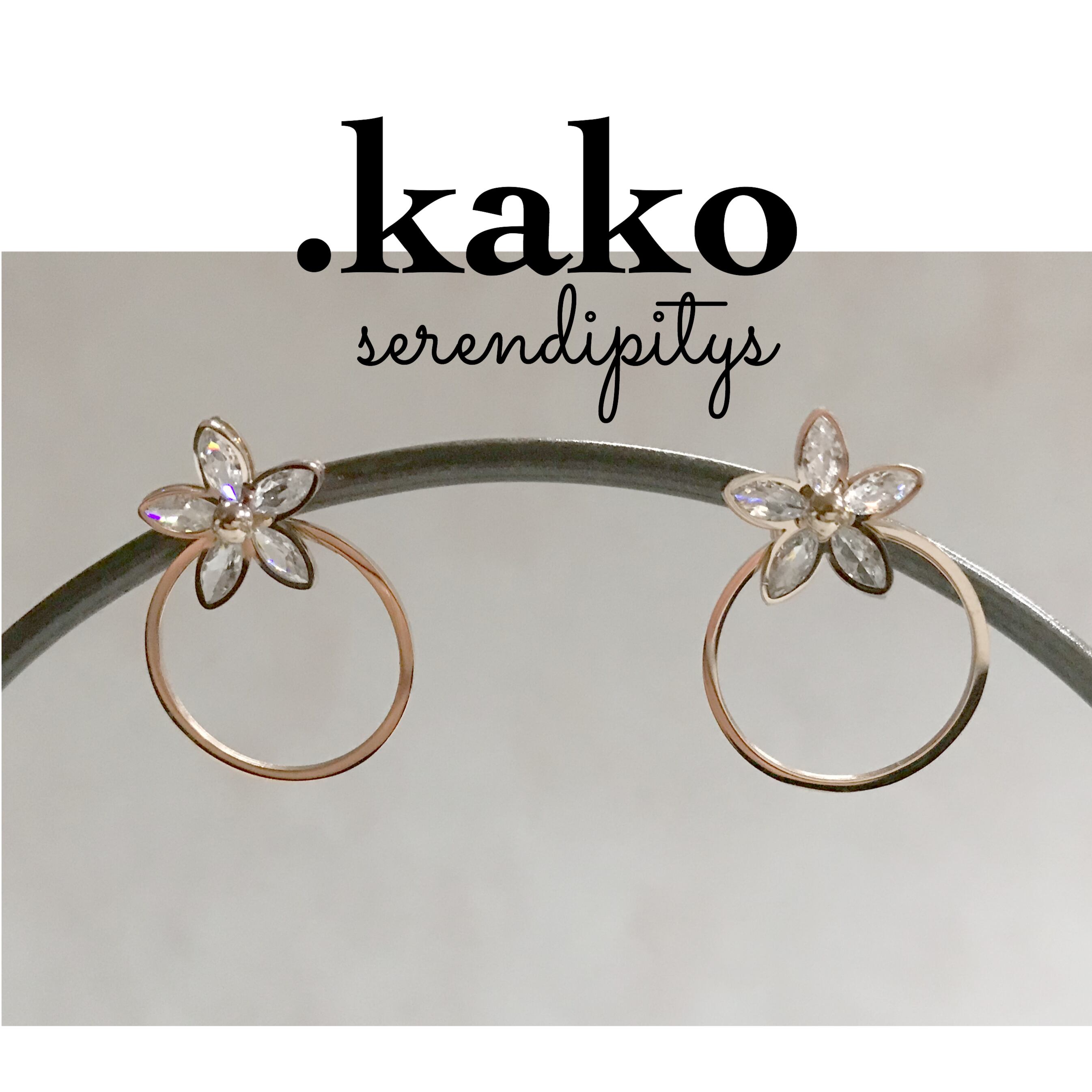 枠にゴールドを使ったキラキラと光るクリスタルの花を中央にあしらったピアス。