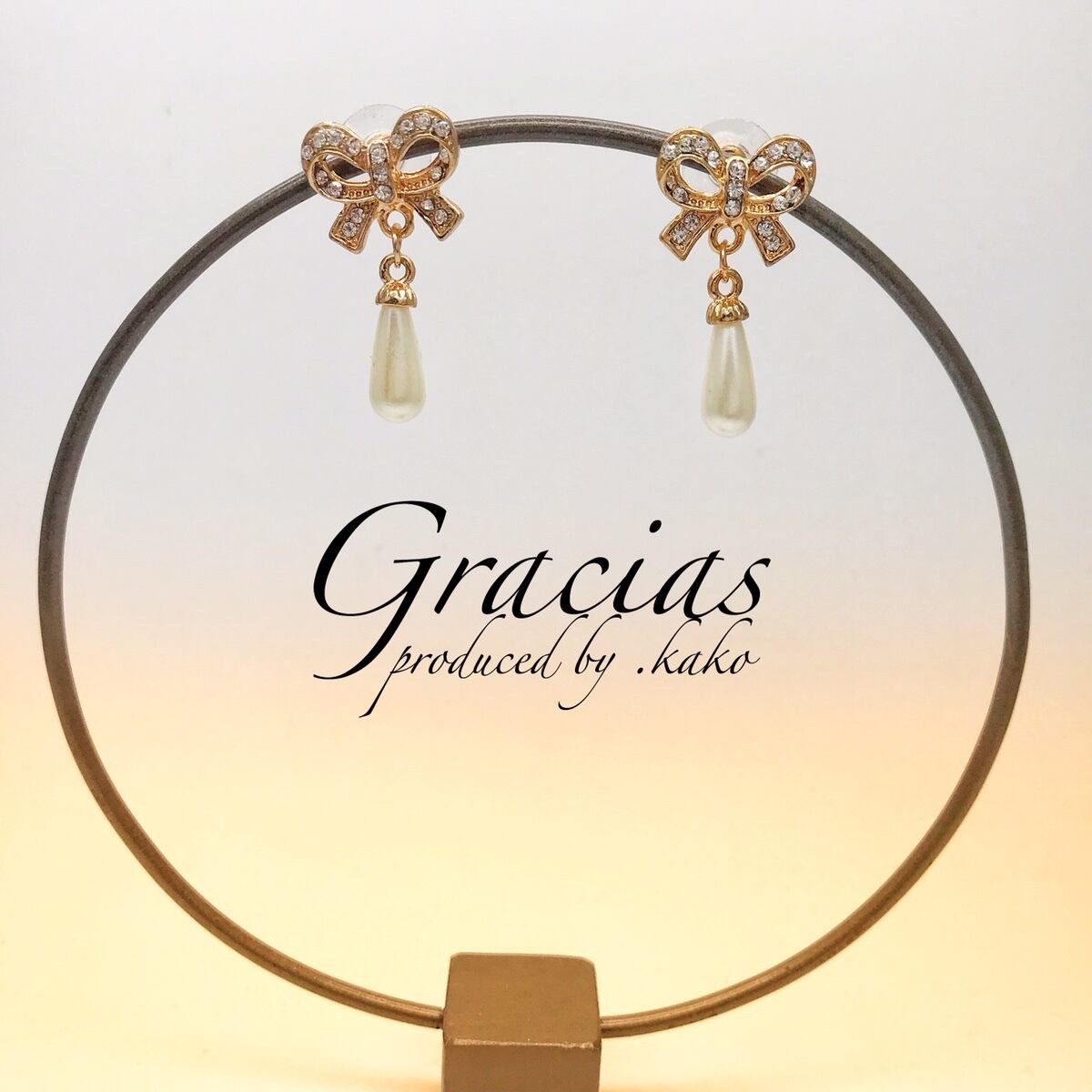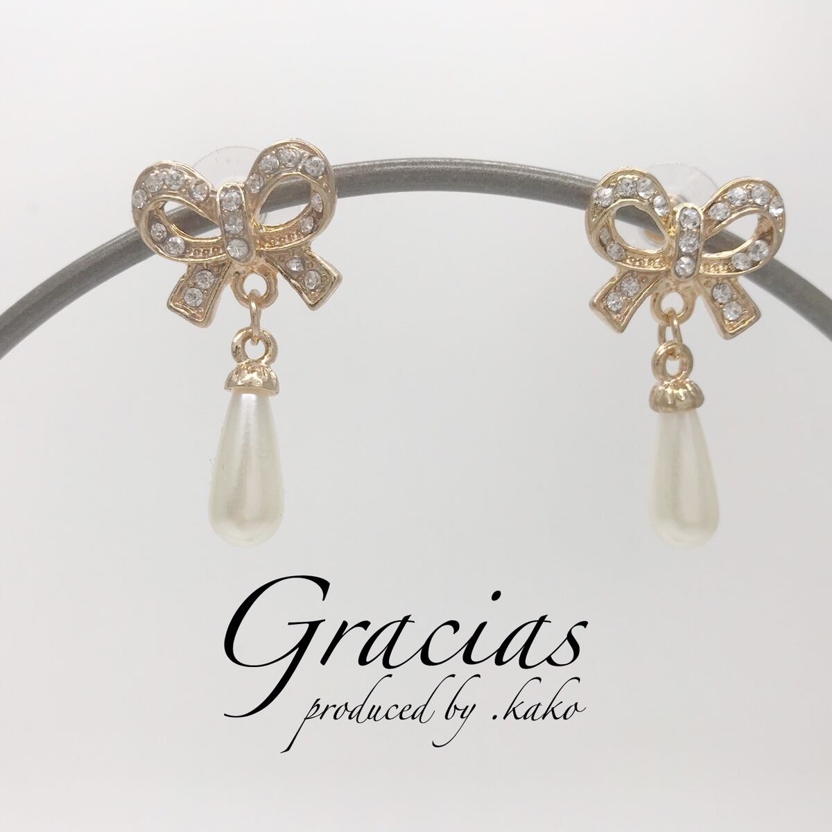 【即日発送】【送料無料】キラキラリボン型 デザイン フリンジ ピアス 両耳 ゴールド☆☆