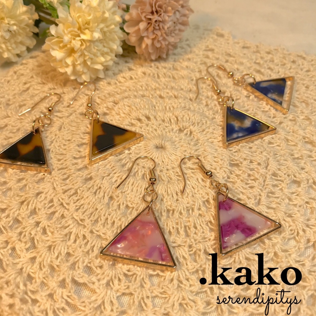 目立ち過ぎない、べっ甲風トライアングルピアス