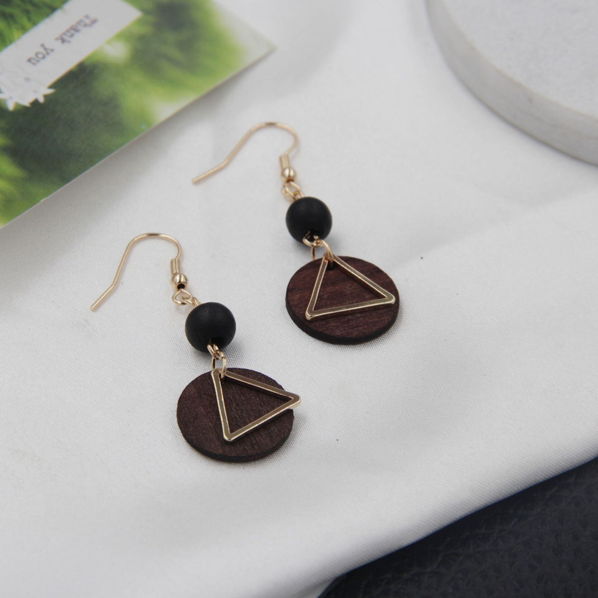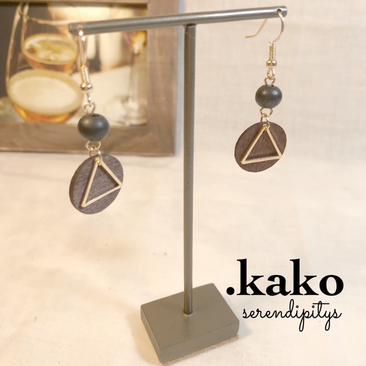 三角のゴールドと丸い木のコンビでナチュラルなかわいさがあります☆